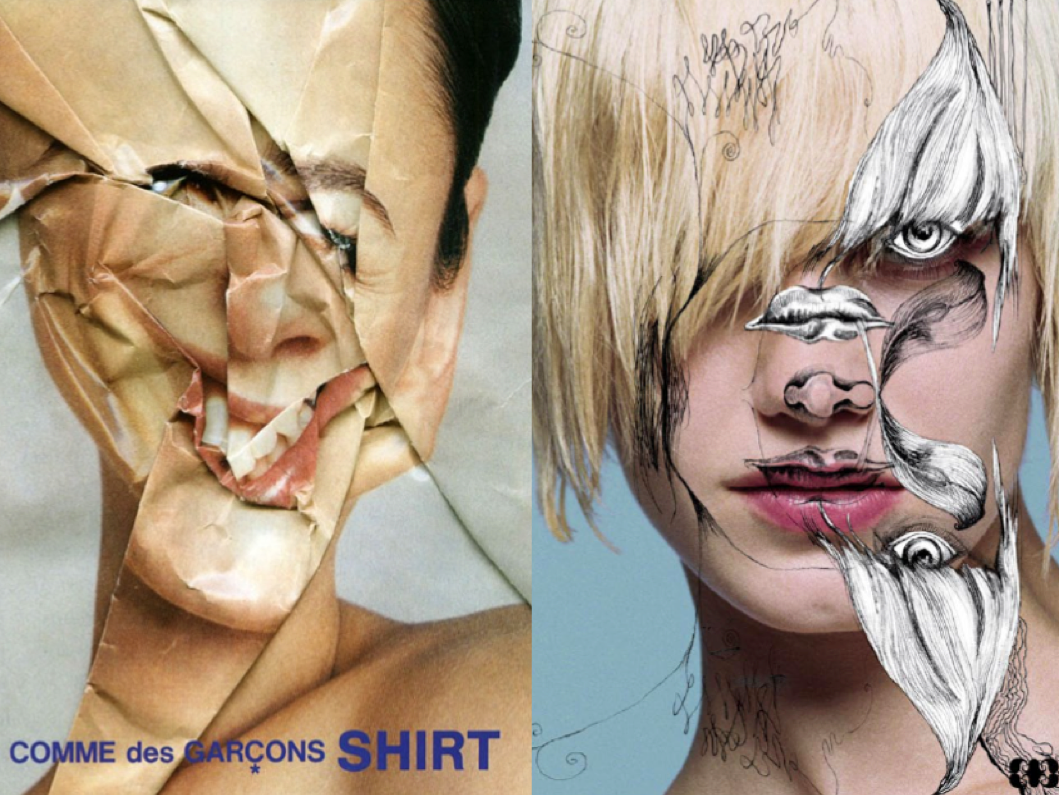 Artists also raise our awareness by altering the images as in the case of the Comme des Garcons ad and M/M Paris below.